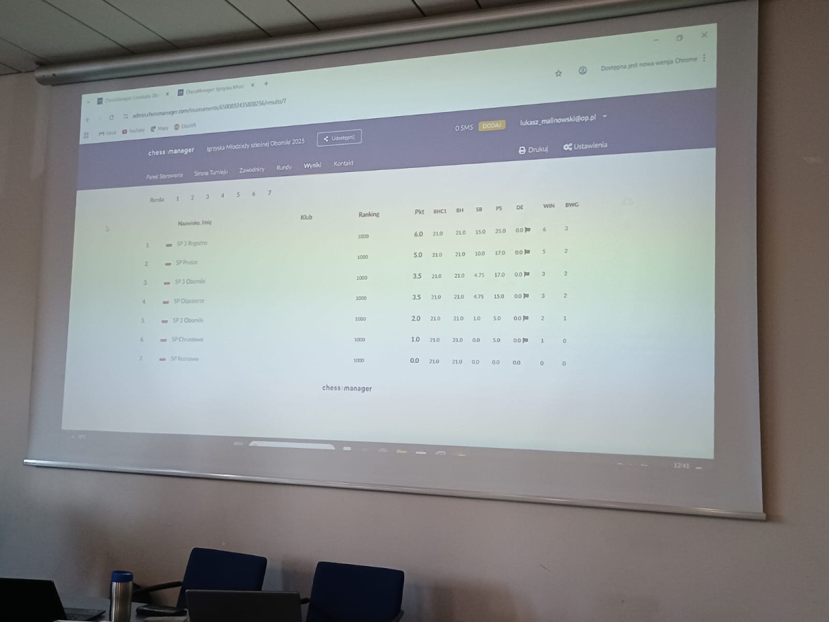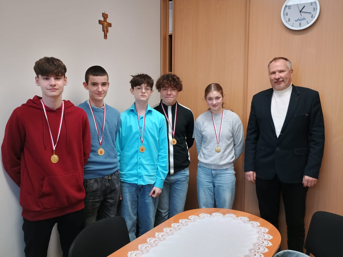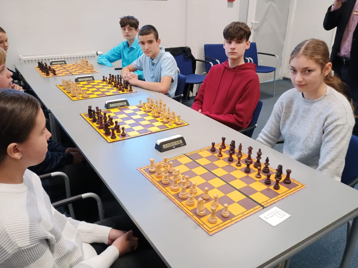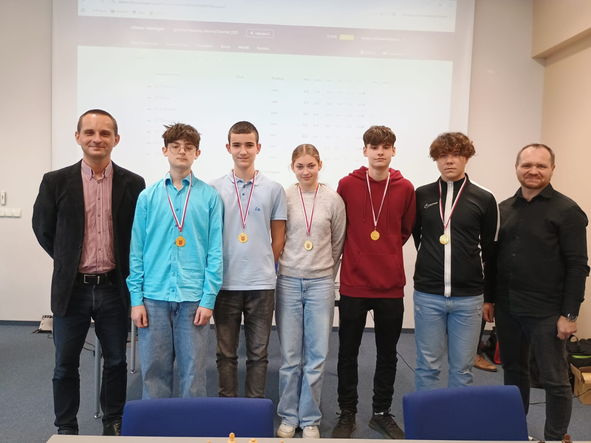 Dnia 13.11.2025 r. (Czwartek) pięcioro uczniów naszej szkoły z klas 7-8, reprezentowało naszą Szkołę podczas Igrzysk Młodzieży Szkolnej w Szachach. Turniej na szaczeblu powiatowym odbył się Obornikach w Centrum Rekreacyjnym. W Igrzyskach wzięło udział siedem szkół podstawowych naszego powiatu oraz cztery szkoły średnie, każda grając w swojej kategorii. Szkoły grały w systemie kołowym w czasie 15 min. na zawodnika. W taki sposób na szkoły podstawowe przypadło siedem rund z czego jedna runda podlegała pauzie ze względu na brak przeciwnika. Wielką radością napawa nas fakt, że uczniowie naszej szkoły zajeli pierwsze miejśce wygrywając wszystkie rundy, kwalifikując się tym samym do kolejnego etapu tym razem na szczeblu wojewódzkim.