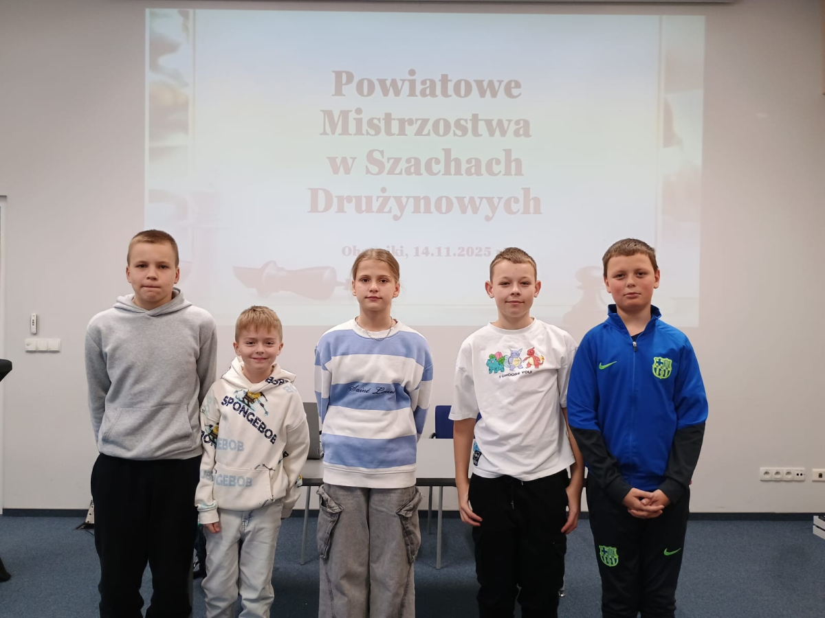 Dnia 14.11.2025 r. (Piątek) pięcioro uczniów naszej szkoły z klas 4-6, reprezentowało naszą Szkołę podczas Powiatowych Mistrzostw w Szachach Drużynowych. Turniej na szaczeblu powiatowym odbył się Obornikach w Centrum Rekreacyjnym. W Mistrzostwach wzięło udział dziesięc szkół podstawowych naszego powiatu. Szkoły grały w systemie Szwajcarskim w czasie 12 min. na zawodnika. Poziom zaawansowania był naprawdę wysoki. Tym bardziej wielką radością napawa nas fakt, że spośród tak wielu szkół uczniowie naszej szkoły zajeli czwarte miejśce.
