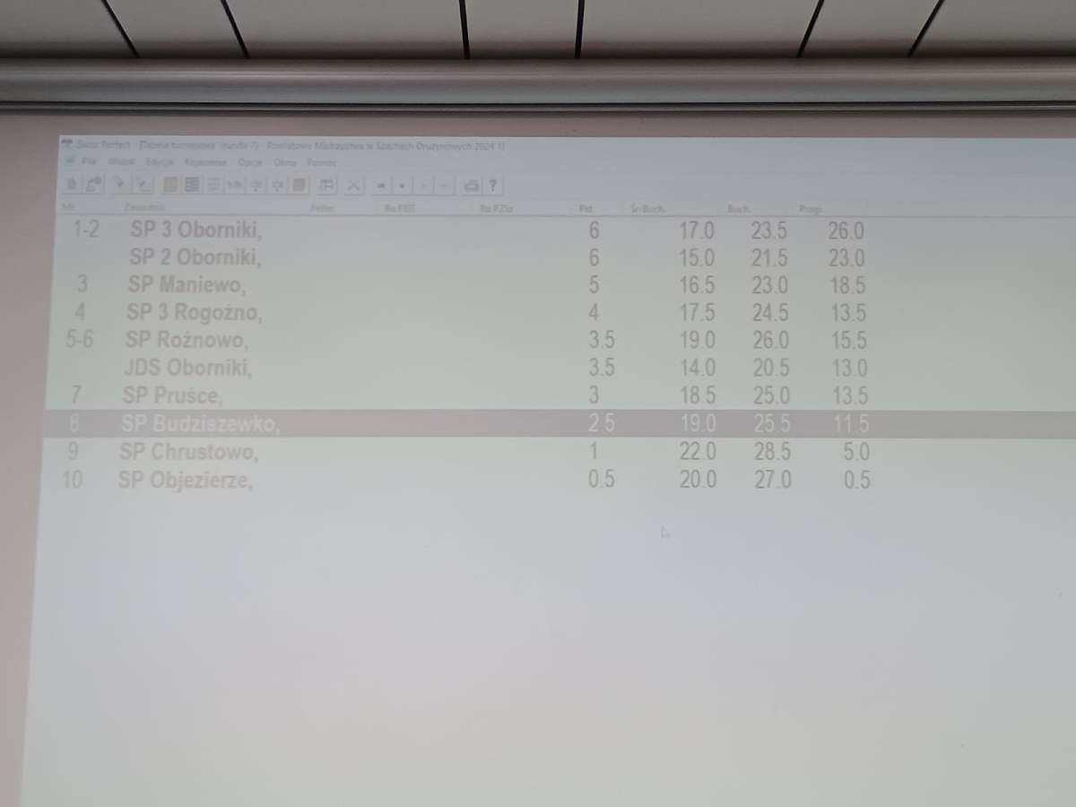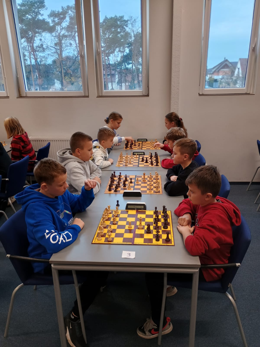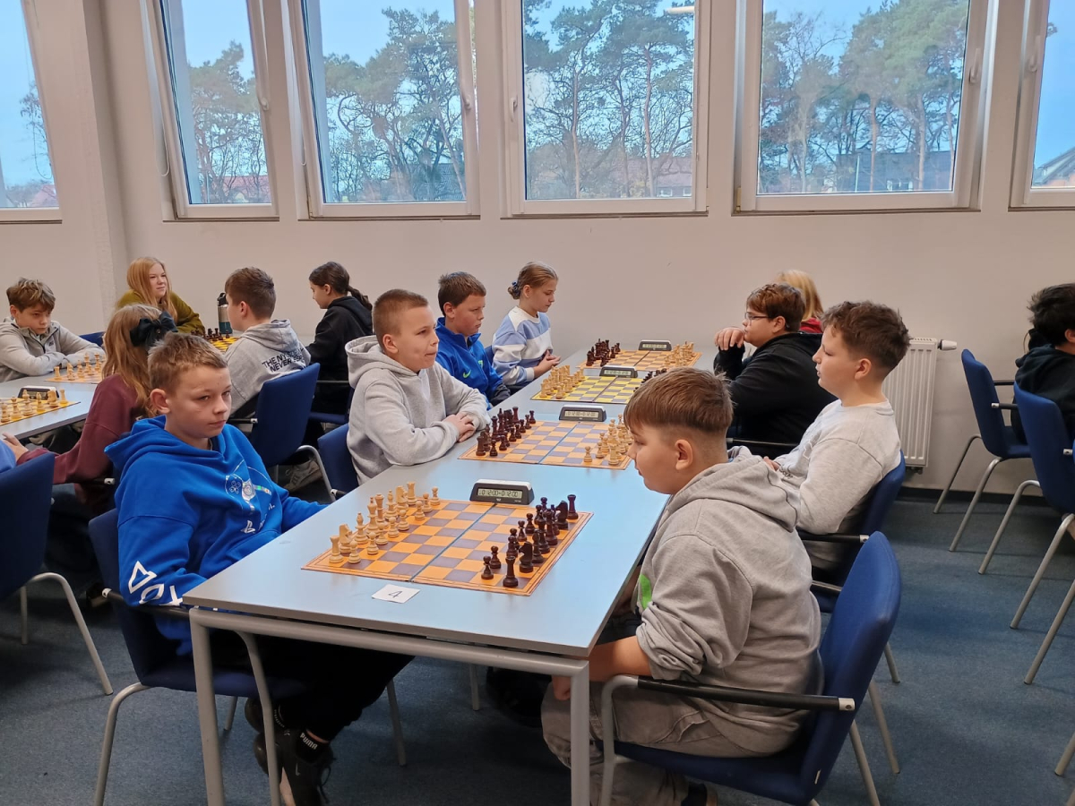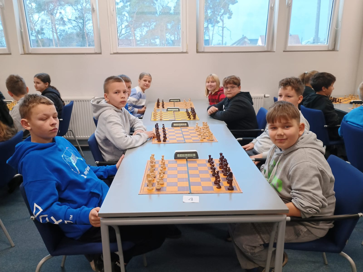 Dnia 14.11.2025 r. (Piątek) pięcioro uczniów naszej szkoły z klas 4-6, reprezentowało naszą Szkołę podczas Powiatowych Mistrzostw w Szachach Drużynowych. Turniej na szaczeblu powiatowym odbył się Obornikach w Centrum Rekreacyjnym. W Mistrzostwach wzięło udział dziesięc szkół podstawowych naszego powiatu. Szkoły grały w systemie Szwajcarskim w czasie 12 min. na zawodnika. Poziom zaawansowania był naprawdę wysoki. Tym bardziej wielką radością napawa nas fakt, że spośród tak wielu szkół uczniowie naszej szkoły zajeli czwarte miejśce.