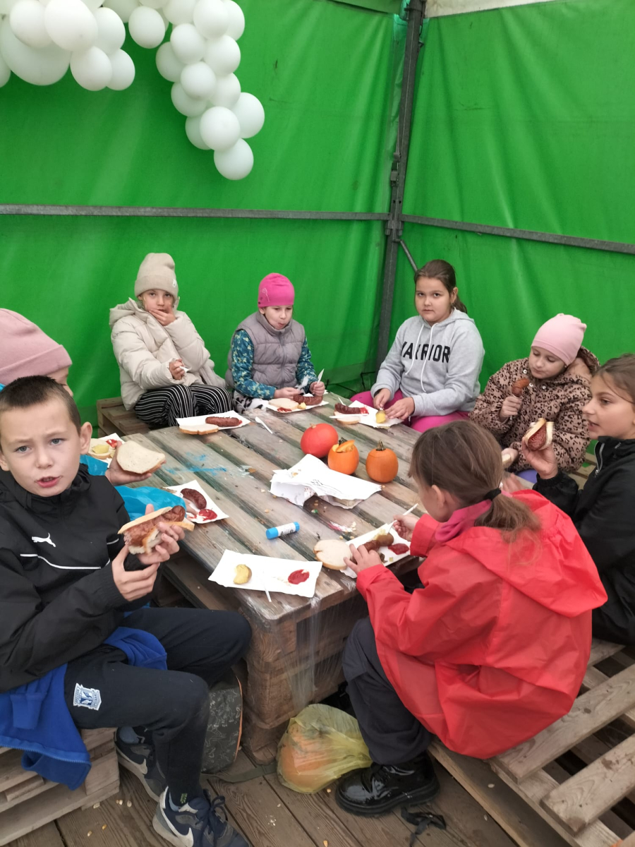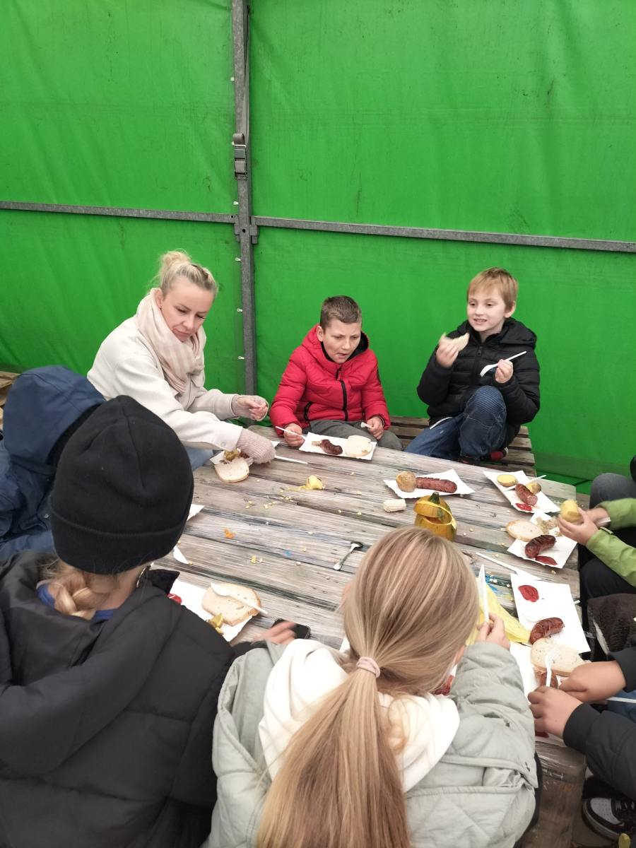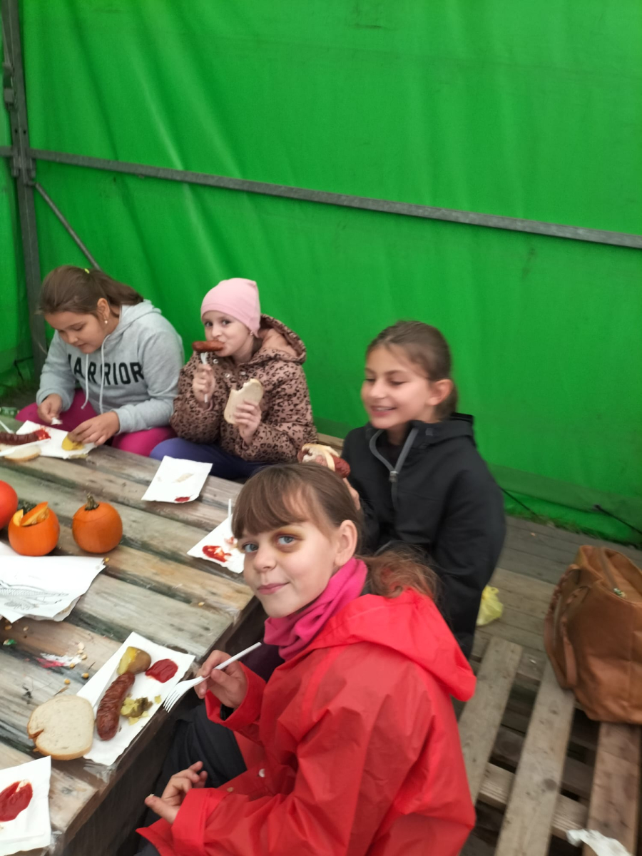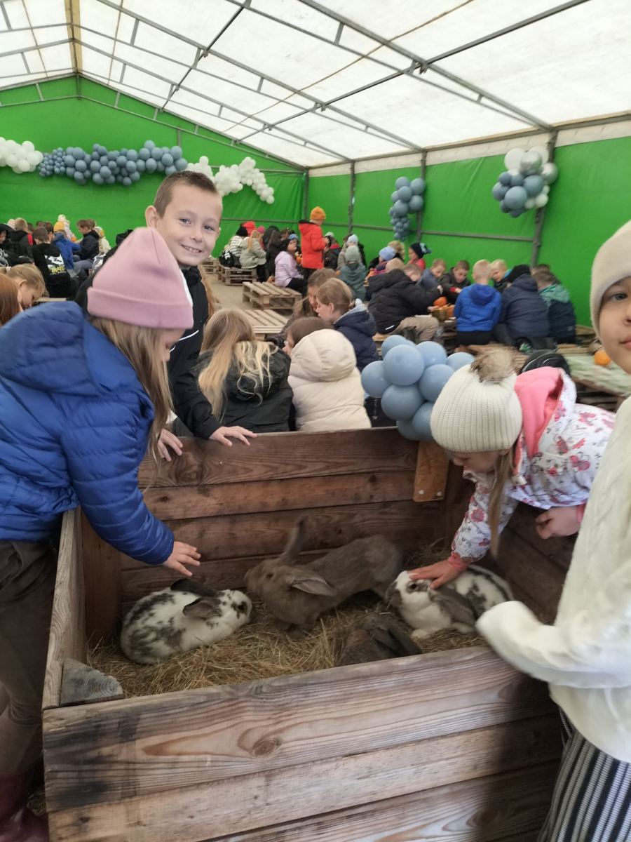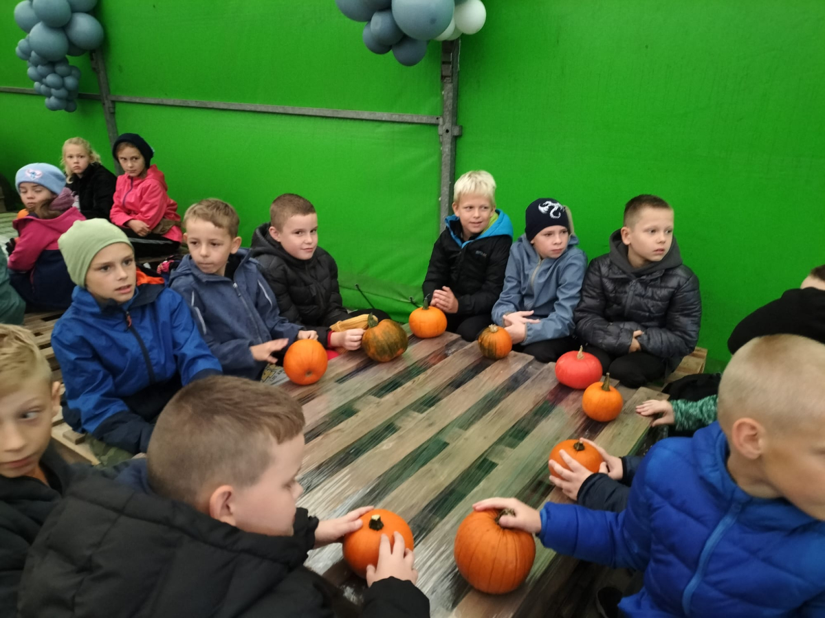 W październiku uczniowie kl.3a i 3b uczestniczyli w wycieczce do Dyniowej Farmy w Runówku. Pogoda nie dopisała, ale uczniowie mieli wiele atrakcji np.: dekorowanie dyń, wyklejanka z kukurydzy, karmienie królików oraz czesanie kucyka. Wszyscy z apetytem zjedli kiełbaskę z ogniska oraz mogli skosztować aromatyczną i pyszną zupę dyniową. Na farmie było więcej atrakcji: ścianka dyniowa do zdjęć, plac zabaw oraz labirynt z kukurydzy. Polecamy warto odwiedzić Runówko - to dyniowa atrakcja nawet w deszczowy dzień.
