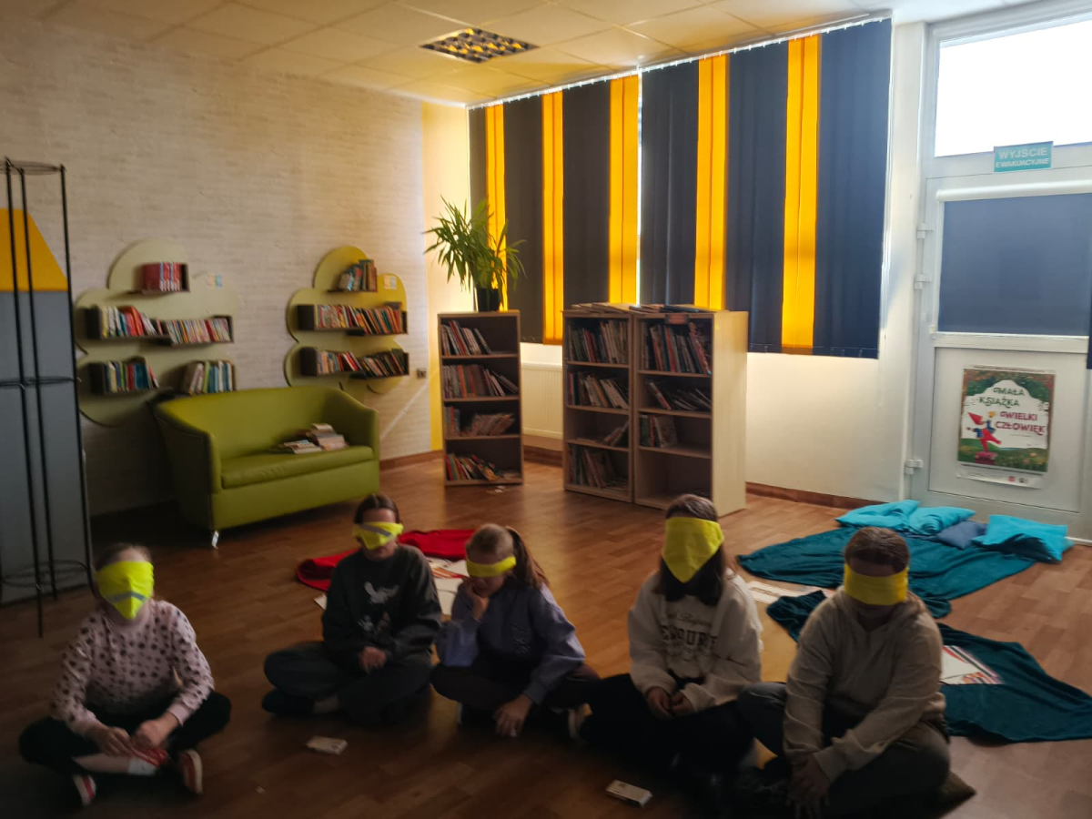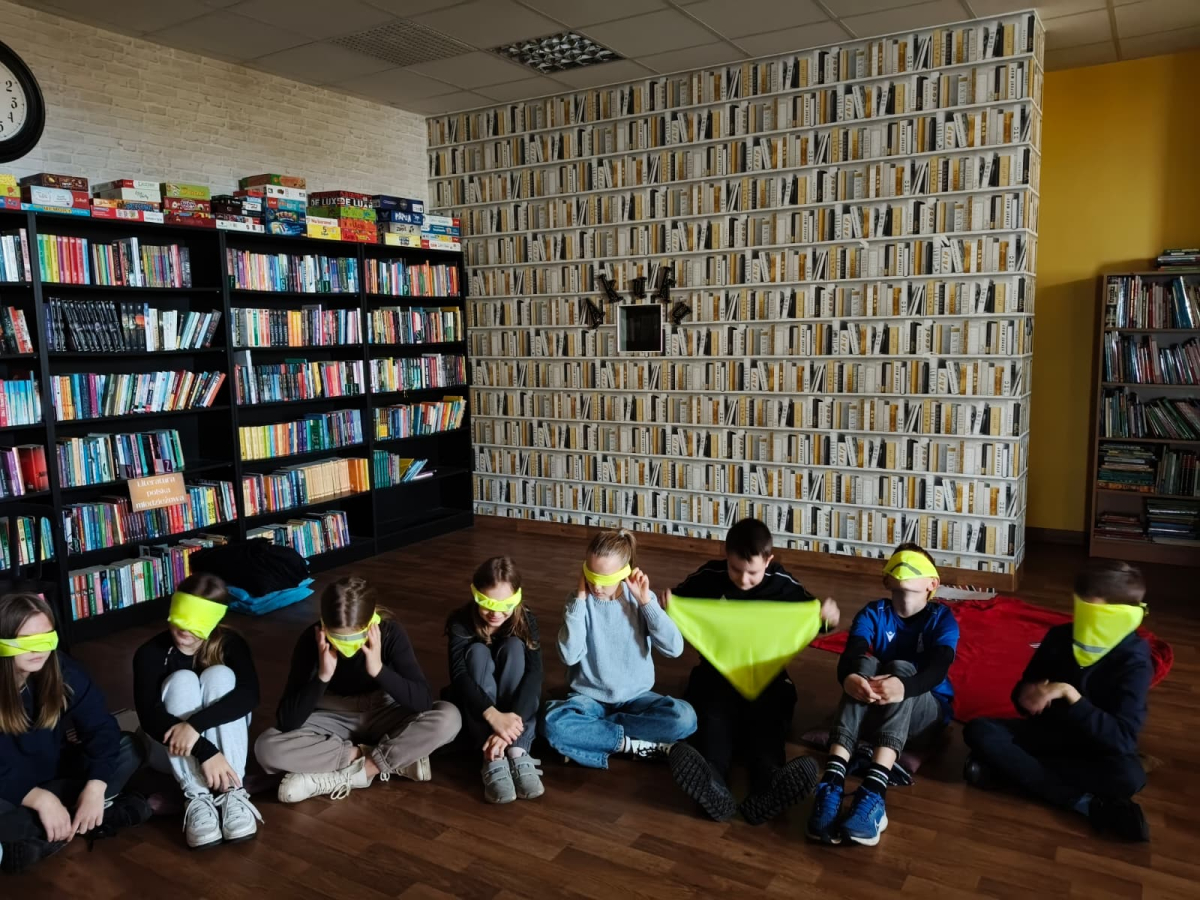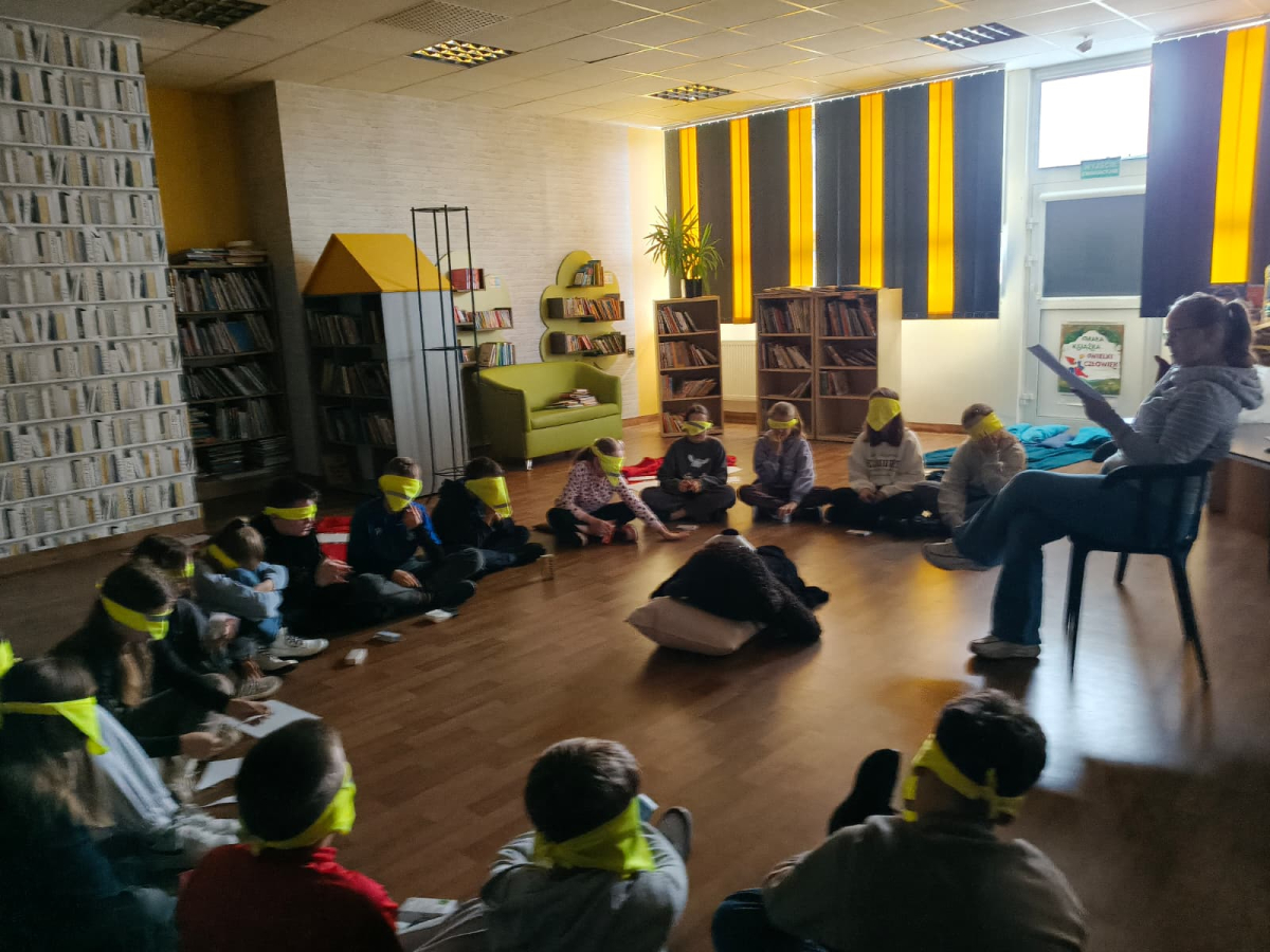 W dniu 12 listopada 2025 roku uczniowie klasy 5c Szkoły Podstawowej nr 3 im. Powstańców Wielkopolskich w Rogoźnie wybrali się z wizytą do Biblioteki Publicznej i uczestniczyli w lekcji języka polskiego zatytułowanej : W świecie ciemności-poczuj się jak bohaterka książki pt. ,,Katarynka." Piątoklasiści znający już treść noweli nabyli bogatych doświadczeń uczestnicząc w zadaniach przygotowanych przez Panią Malwinę Kmiciak -Lipską. Dzieci mogły wczuć się w życie głównej bohaterki lektury szkolnej i doświadczyć wrażeń chorego dziecka. Tym samym nabyły empatii do ludzi niepełnosprawnych i zostały wdrożone w potrzebę niesienia im pomocy.