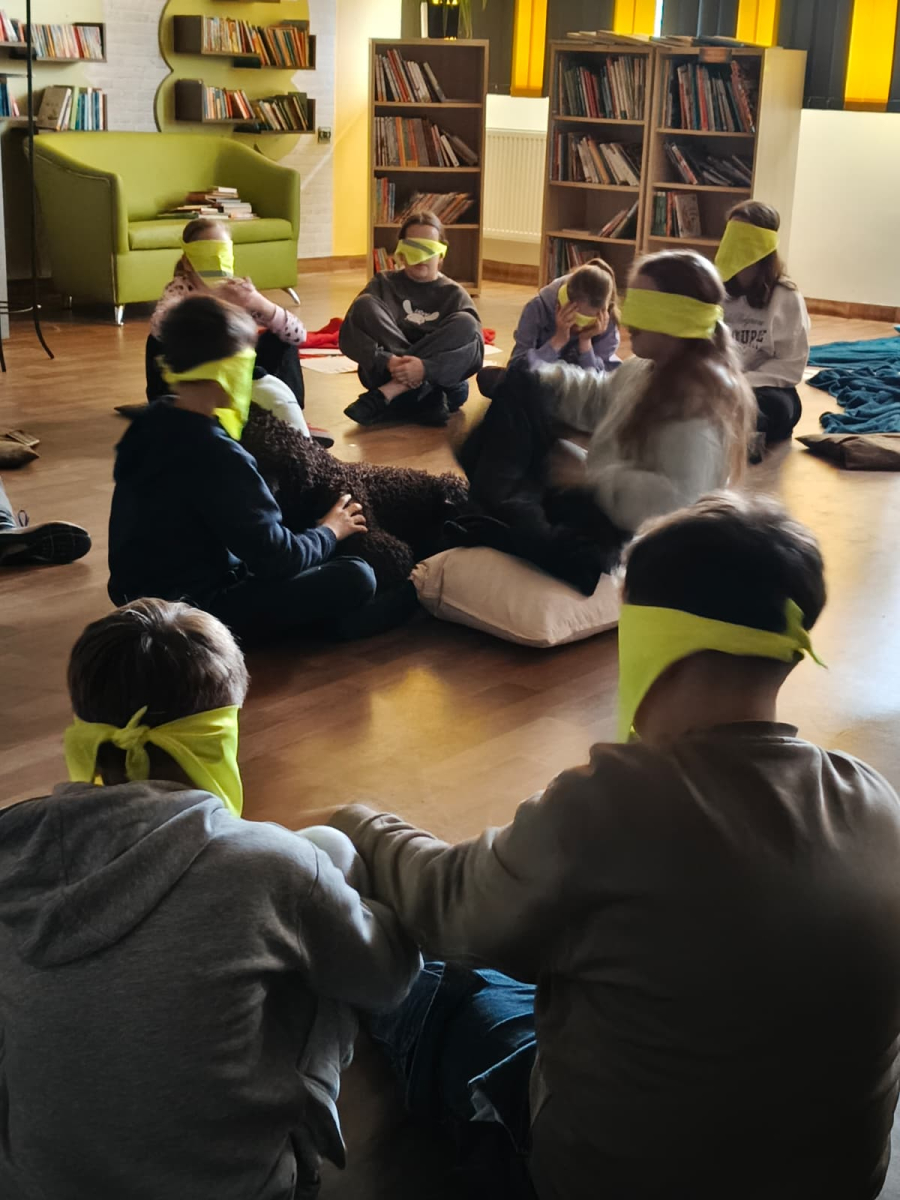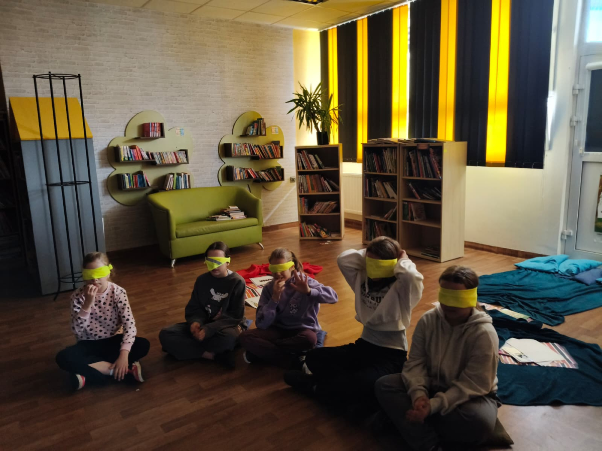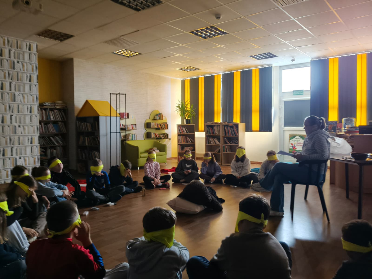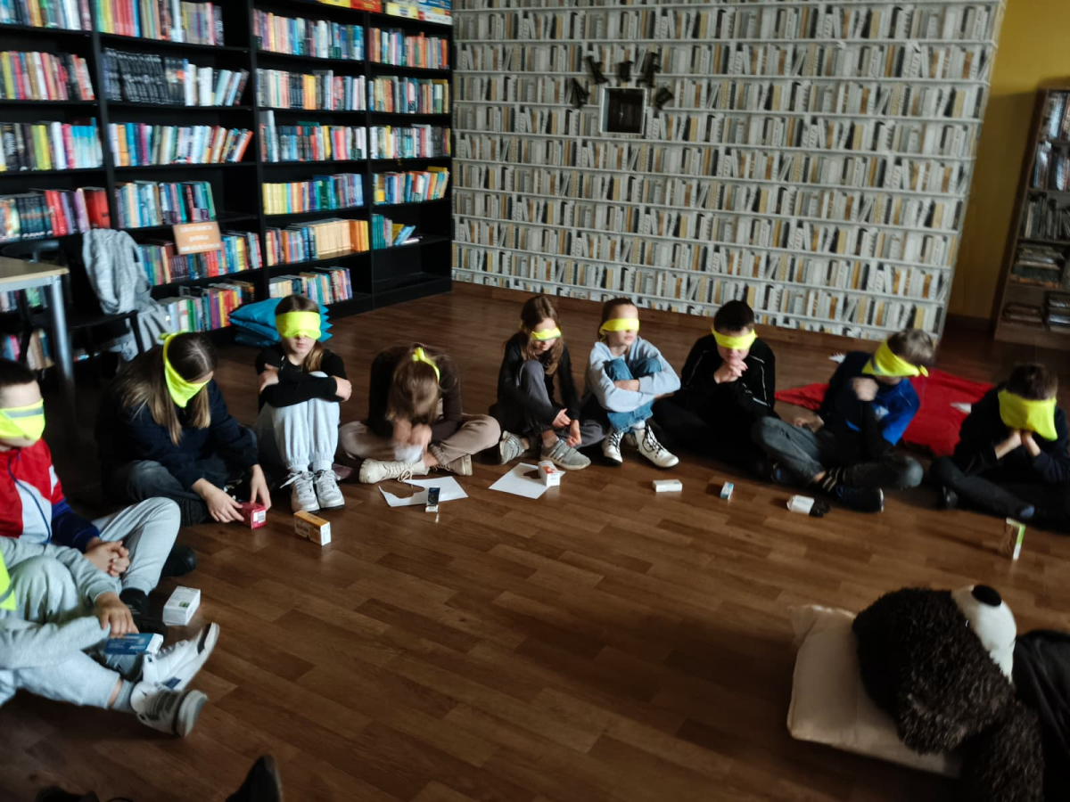 W dniu 12 listopada 2025 roku uczniowie klasy 5c Szkoły Podstawowej nr 3 im. Powstańców Wielkopolskich w Rogoźnie wybrali się z wizytą do Biblioteki Publicznej i uczestniczyli w lekcji języka polskiego zatytułowanej : W świecie ciemności-poczuj się jak bohaterka książki pt. ,,Katarynka." Piątoklasiści znający już treść noweli nabyli bogatych doświadczeń uczestnicząc w zadaniach przygotowanych przez Panią Malwinę Kmiciak -Lipską. Dzieci mogły wczuć się w życie głównej bohaterki lektury szkolnej i doświadczyć wrażeń chorego dziecka. Tym samym nabyły empatii do ludzi niepełnosprawnych i zostały wdrożone w potrzebę niesienia im pomocy.